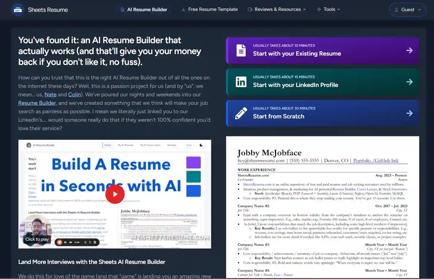 It’s a resume builder powered by AI, operating inside Google Sheets, with added tools for cover letters and mock interviews.